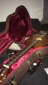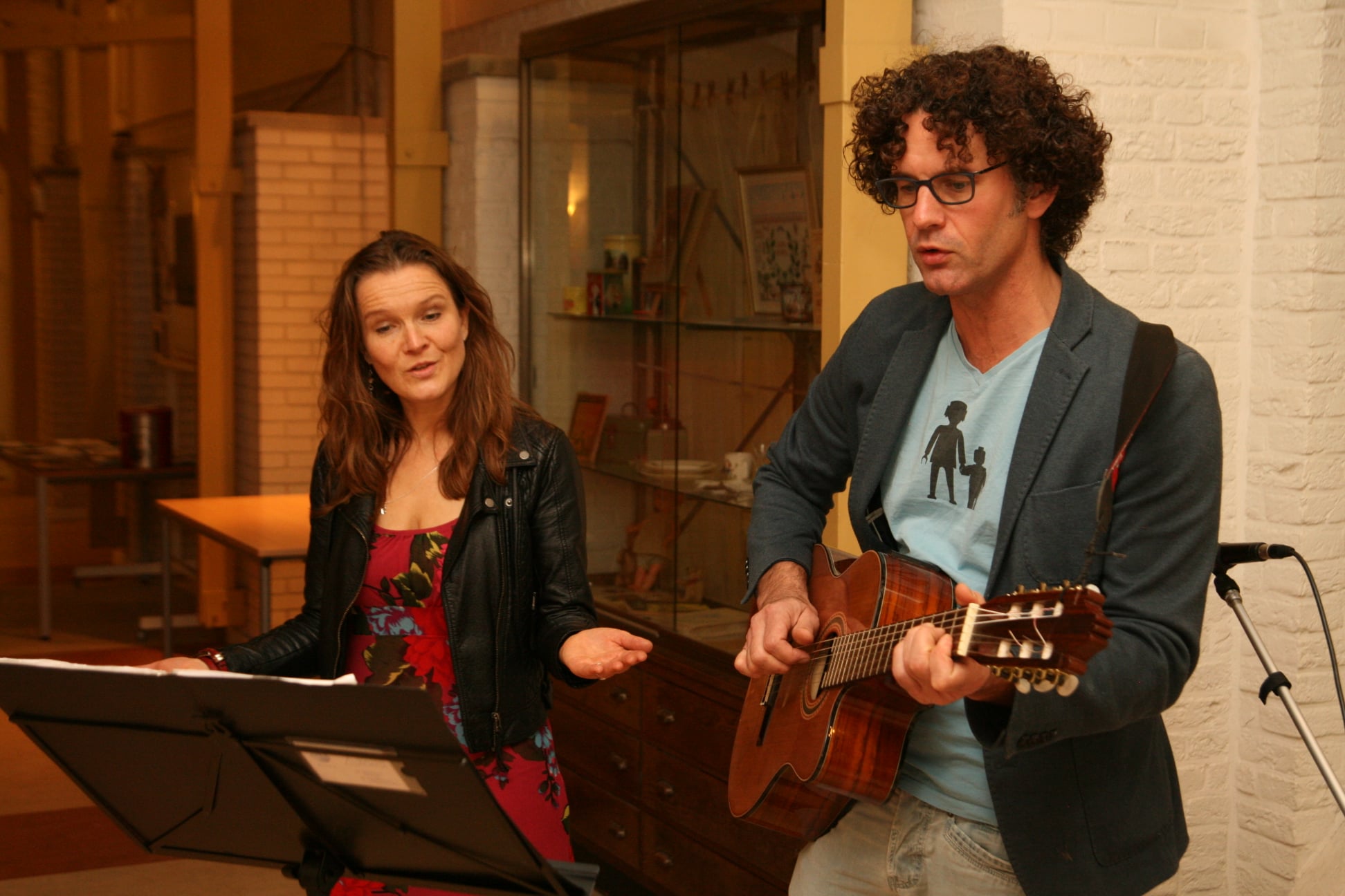 Live gitaar met zang als ondersteuning voor een diepzinnig gesprek.