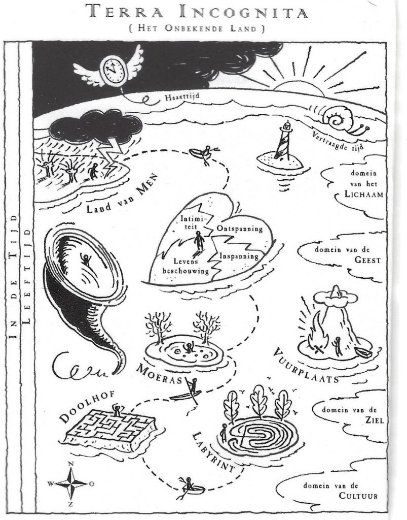 Op de landkaart voor in het boek ( zie de afbeeldingen) laat Marinus je zien hoe dit landschap er uit kan zien. Het is aan jou hoe je hier naar kijkt en invulling aan geeft.